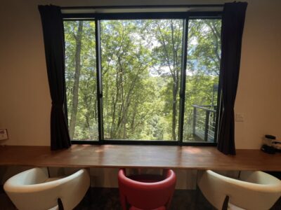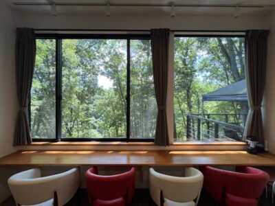 2棟共に浅間奥入瀬を見下ろす大きな窓辺で別荘感覚の趣きです。
