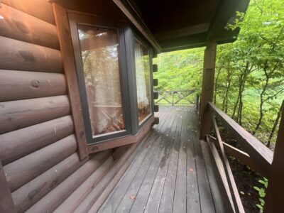 ウッドデッキで森林浴を エンゼルフォレスト浅間高原別荘地内