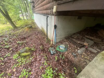 ウッドデッキの柱、入り口階段の補修済み。